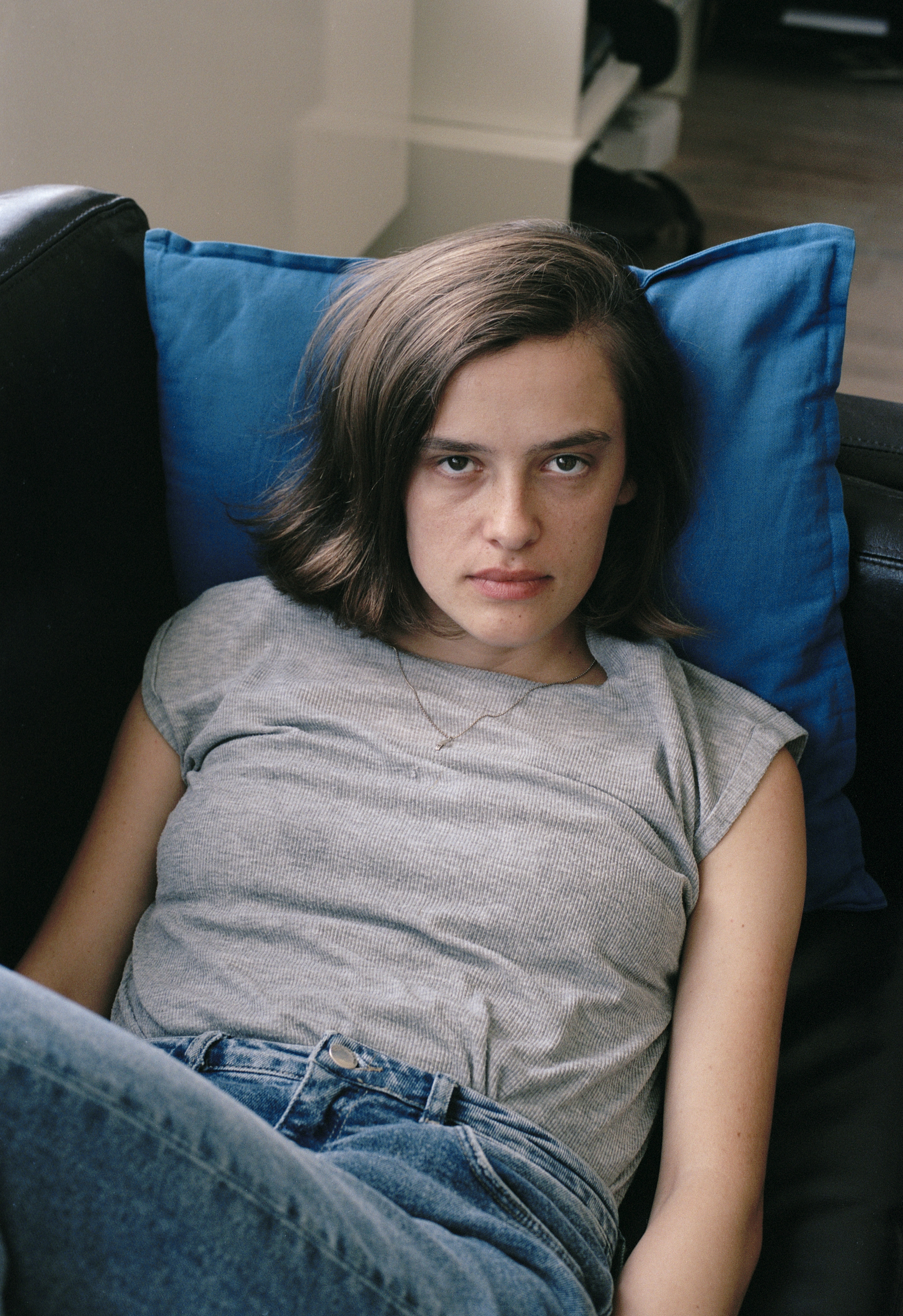 Ihre Arbeit besteht aus einer Reihe mit sieben hochformatigen Fotografien im Format 51 x 35 cm. Vier Bilder sind digitale C-Prints und zeigen abstrakte Abtreppungen und Verschachtelungen. Bei genauem Betrachten wird die Holzstruktur des Materials deutlich und sogar kleinste Partikel sind zu erkennen. Die anderen drei analogen Bilder zeigen eine junge Frau auf einem Ledersofa. Dorien schaut direkt in die Kamera, wobei sich der Standort und die Perspektive der Fotografin von Bild zu Bild leicht verändert.