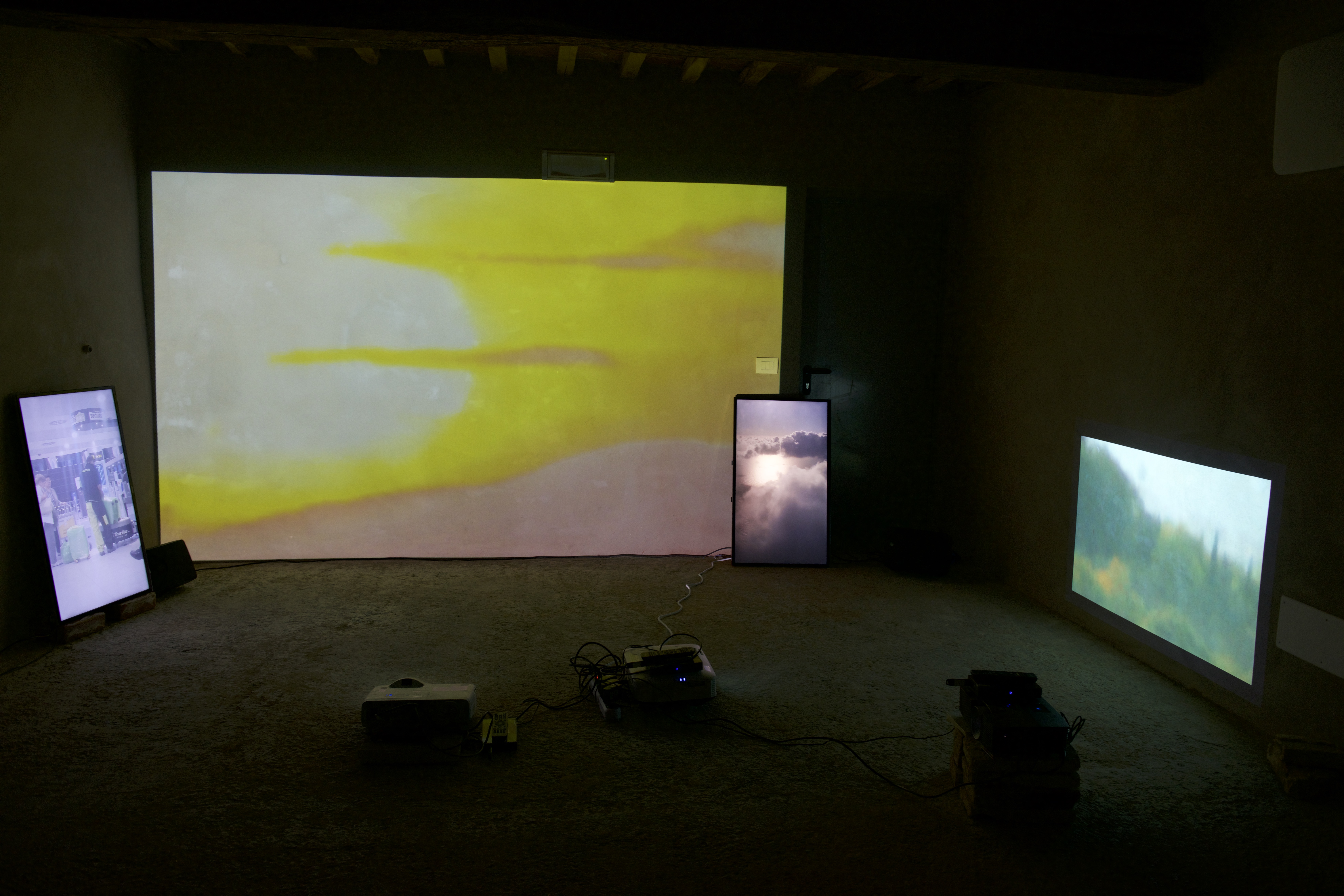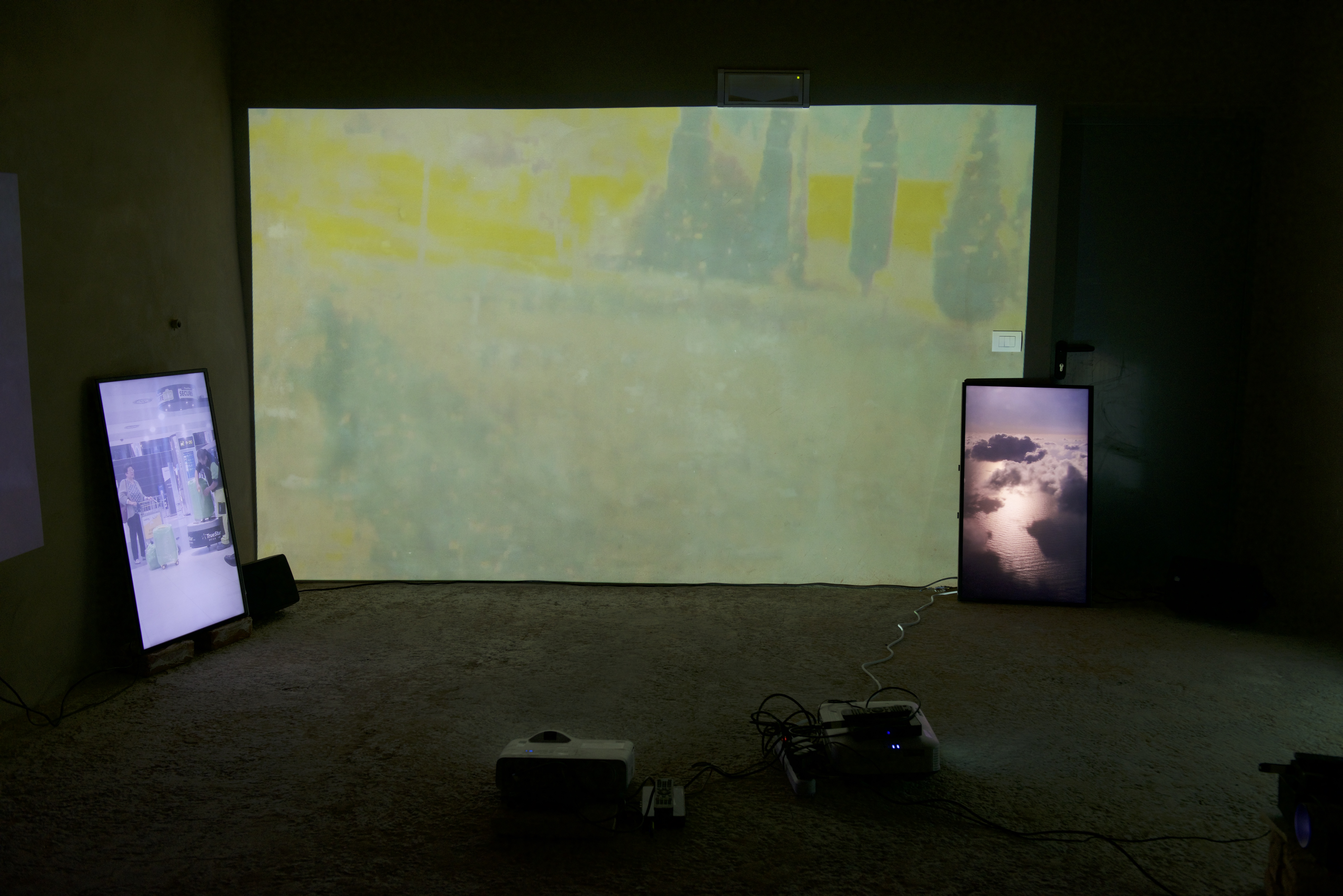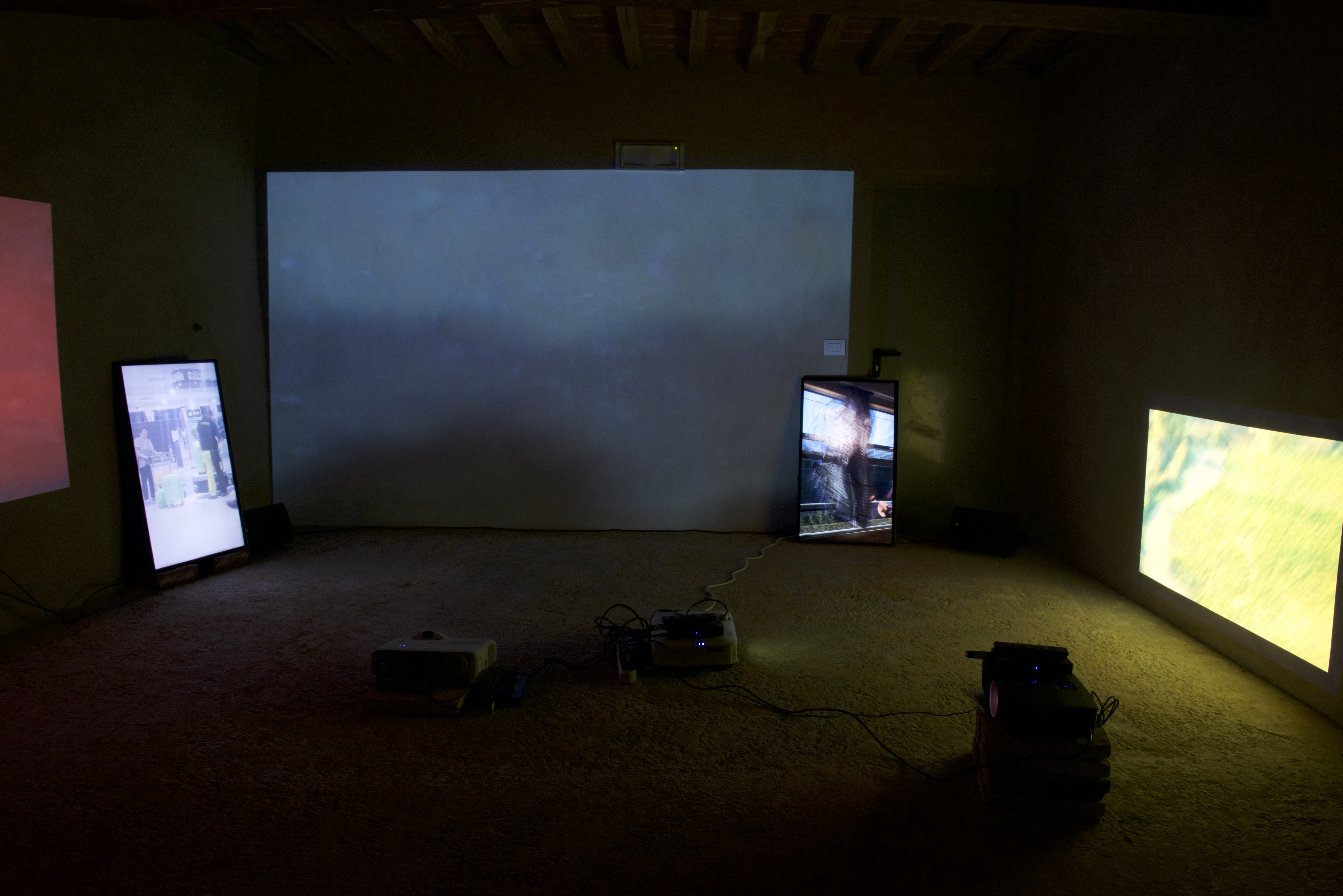 (3 projectors, 2 flatsreens, loudspeaker)